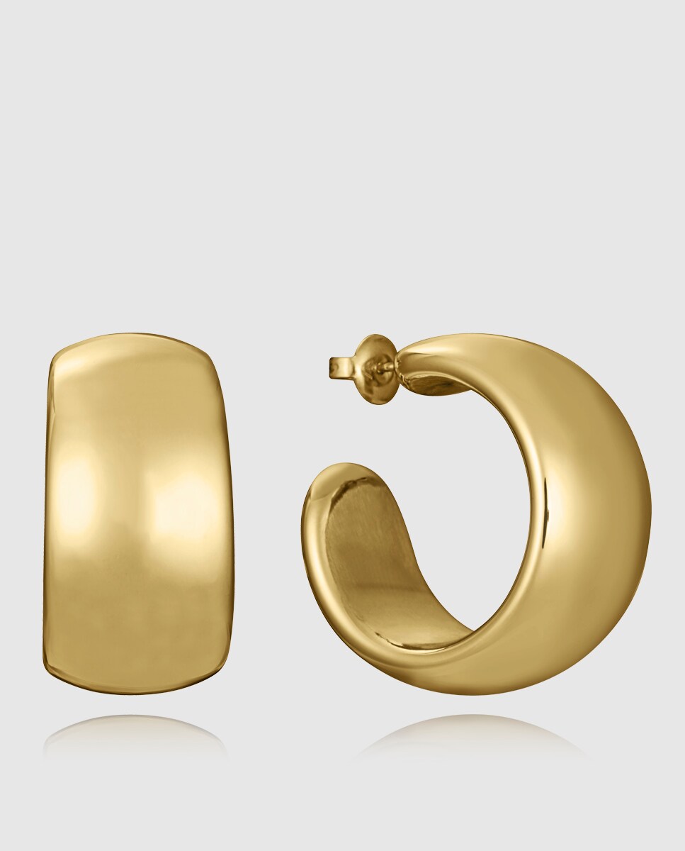 Brincos de mulher em aço Ip dourado aro aberto com volume.