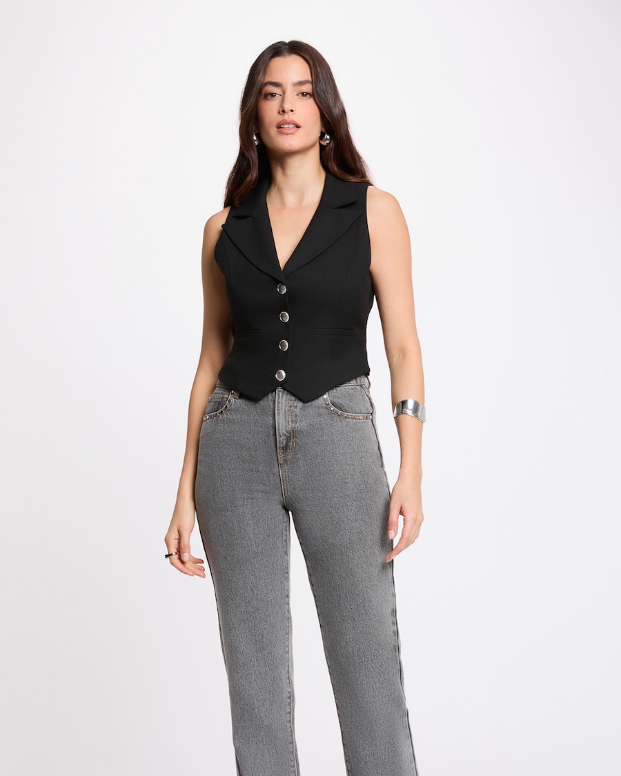 Colete com Botões em Contraste