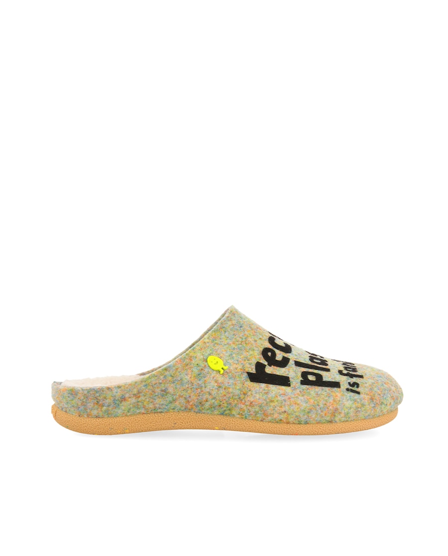 Bem-vinda ao universo Hot Potatoes! Pantufas tipo babouche com a nossa famosa "batata" estilo "Recycle plastic". O corte é de feltro PET reciclado. A planta de material suave. A palmilha é extraível de espuma de poliuretano 100% reciclado e a sola é de borracha natural. Não as deixes escapar!