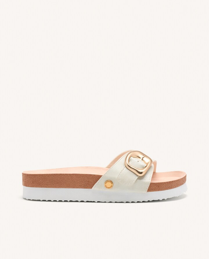 Sandálias tipo bio com fivela. Contam com palmilha anatómica de microfibra suave. Composição: -Sola leve de EVA. -Palmilha de microfibra suave e respirável. -Forro de poliéster. -Parte superior de poliuretano.