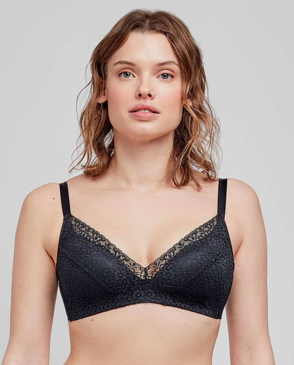 Soutien capacidade sem aro e com foam em tecido de renda. Alças reguláveis e fecho posterior. Disponível em copas C e D e em várias cores. Combina-o com a sua cueca a condizer.