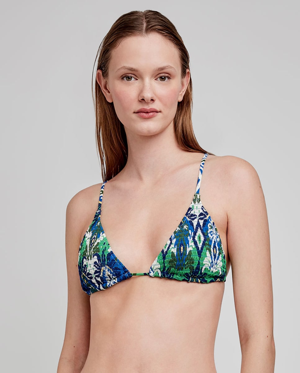 Top de biquíni triangular sem aro em tecido. Combina-o com a sua cueca de biquíni a condizer.
