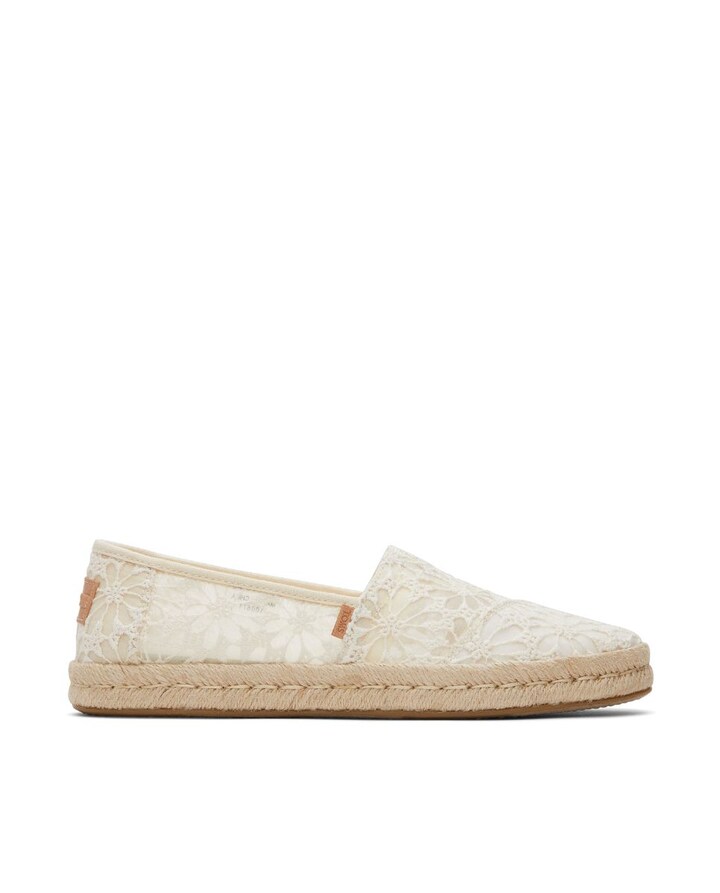Alpercatas TOMS Rope 2.0 de mulher com parte superior de renda floral e entressola envolta em juta. Design sem atacadores, cómodo e com um ar boho chic perfeito para looks frescos e femininos.