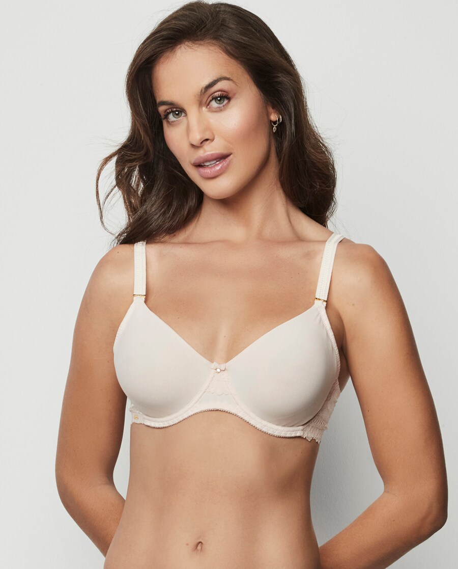Soutien efeito redutor com copa pré-formada. Conta com aros e base, e sem copa de foam. Contém e reduz visivelmente o peito. Tanto o seu interior como as suas costas estão forrados com tule de controlo. A largura das alças aumenta em função do tamanho, tal como a medida do fecho de colchete. Uma peça delicada e sofisticada. A coleção Agatha, à qual pertence, encarna a maturidade e o esplendor da marca, oferecendo peças que não só adornam, mas que transformam. Uma coleção com encanto e carisma.
