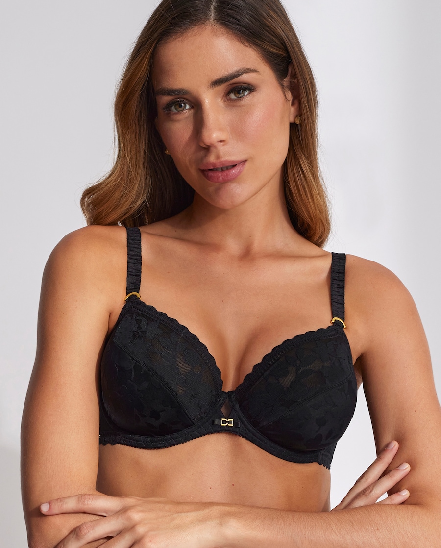 Soutien de capacidade de decote médio. Efeito controlo envolvente. Ideal para os tamanhos mais grandes. Esta peça é uma promessa de momentos especiais, um toque de mistério e sedução que transforma o poder da feminilidade na sua forma mais refinada e cativante.