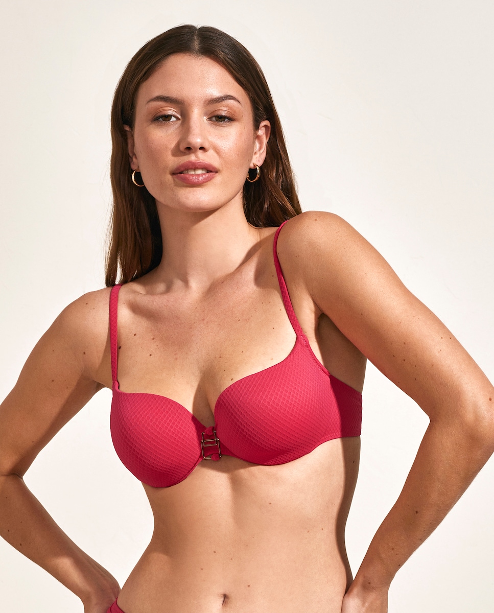 Top de biquíni com aro e copa de foam. Aporta uma sustentação perfeita e o máximo conforto. Este design versátil é perfeito para quem deseja uma peça que se adapte a diversas ocasiões e estilos. O seu ajuste confortável e seguro permite desfrutar de atividades aquáticas sem preocupações, seja na praia ou na piscina. Sem dúvida, é uma opção clássica, prática e elegante para o verão, ideal para estar bem enquanto te divertes sob o sol.