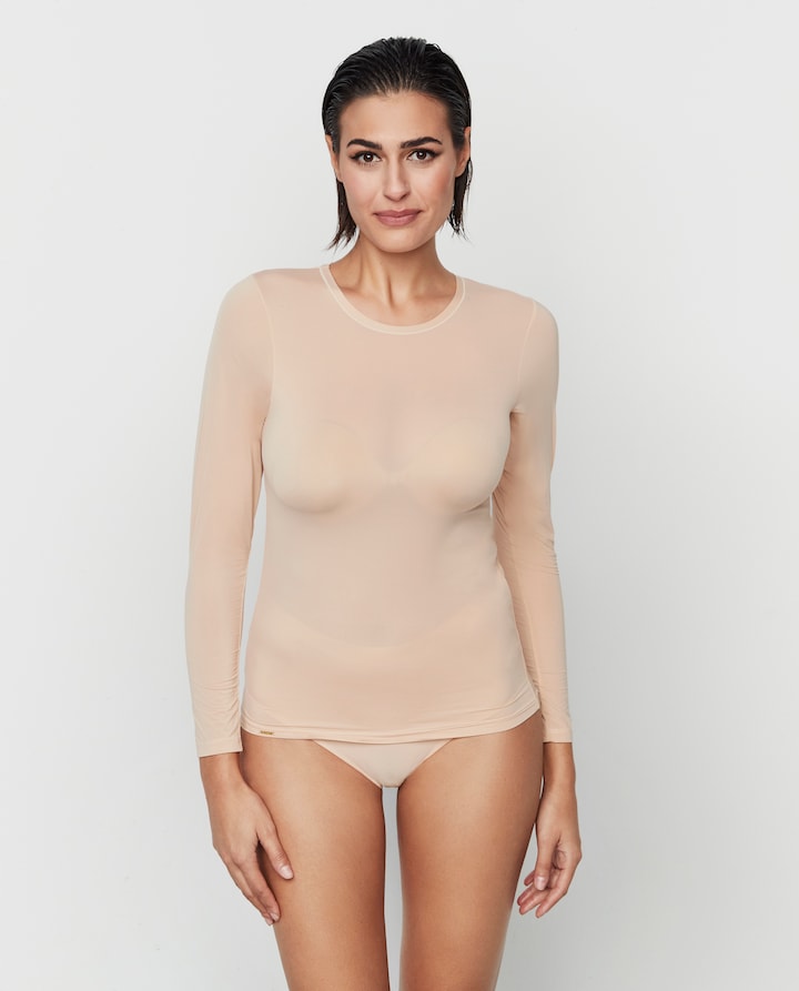 T-shirt de manga comprida, uma peça ultrafina e adaptável. Ajusta-se ao corpo como uma segunda pele.