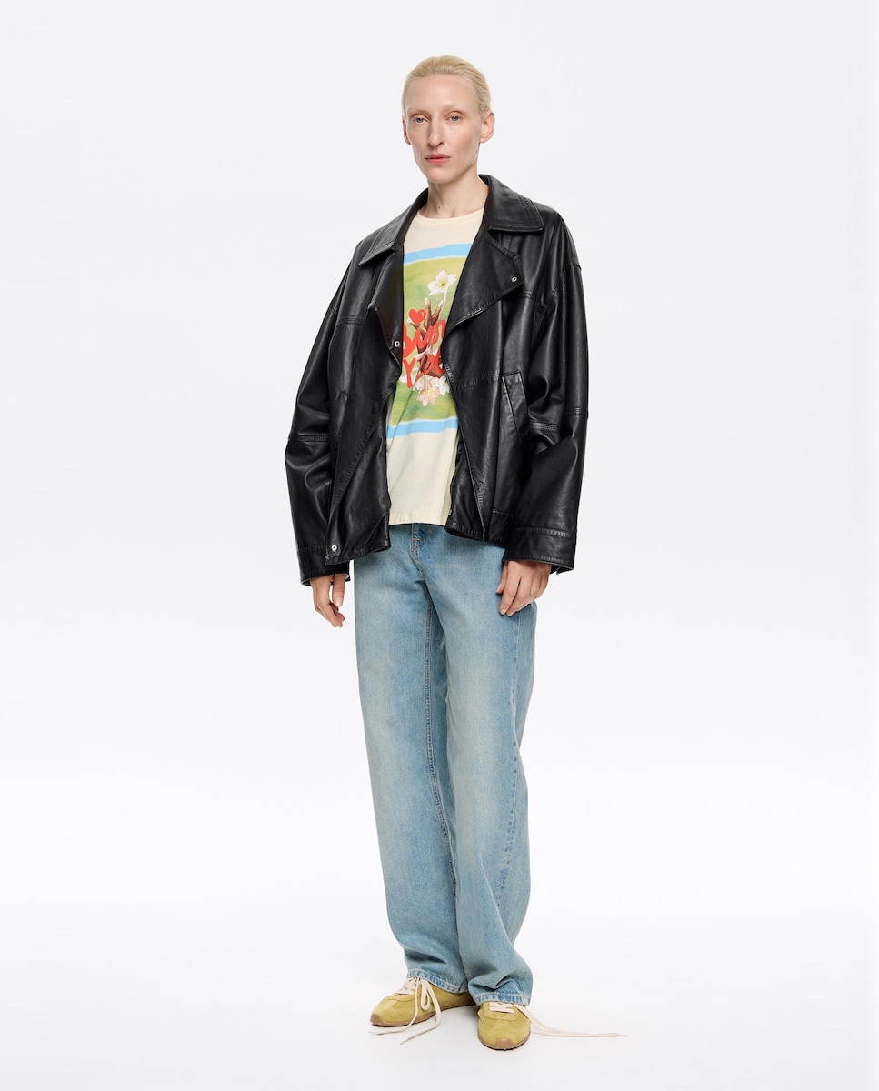 Blusão de mulher confecionado em pele ovina 100%, apresentado em um elegante preto. Esta peça, desenhada pela marca BIMBA Y LOLA, é ideal para a temporada Primavera-Verão do ano 2025. Caracteriza-se pelo seu acabamento liso e pela incorporação de botões como sistema de fecho. Para o seu cuidado, recomenda-se não utilizar secadora nem lixívia e permite-se a lavagem a uma temperatura máxima de 30ºC. É uma peça de vestir que se destaca pela sua qualidade e design, oferecendo uma opção de moda duradoura e atemporal para o género feminino.