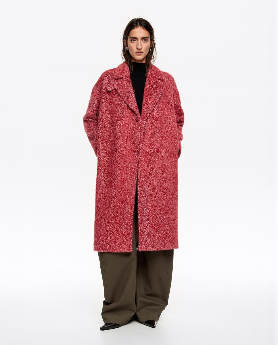 Descobre a elegância intemporal deste sobretudo de alfaiate para mulher, confecionado em um suave tecido de pelo que aporta um toque de sofisticação a qualquer look. Seu corte a direito e midi, junto com os botões duplos frontais e a clássica gola com lapela, garantem um ajuste perfeito e um estilo refinado. Com mangas compridas e a direito e práticos bolsos em costura, é a peça ideal para realçar o teu guarda-roupa. Perfeito para qualquer ocasião, este sobretudo é um investimento em estilo e conforto.