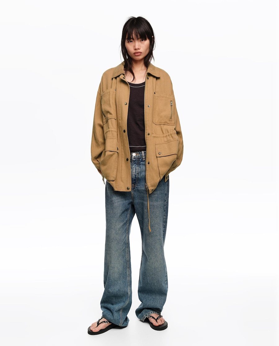 Descobre o blusão de mulher de BIMBA Y LOLA, uma peça versátil e moderna com cintura ajustável que se adapta ao teu estilo. Confecionado em suave viscose, o seu design liso e funcional inclui múltiplos bolsos, ideal para um look casual e prático. Perfeito para combinar com os teus outfits diários, este blusão é uma opção imprescindível no teu armário.