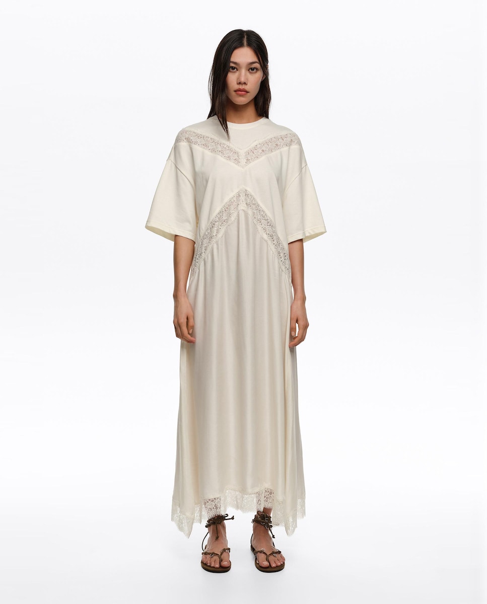 Descobre a elegância do vestido comprido bimatéria de Bimba y Lola, uma peça única que combina a suavidade do algodão, o liocel e a viscose. O seu design com rendas aporta um toque sofisticado e feminino, ideal para qualquer ocasião. Com mangas curtas e um corte fluído, este vestido garante conforto e estilo. Perfeito para brilhar em eventos especiais ou num dia casual. Faz com que o teu armário brilhe com esta peça versátil!