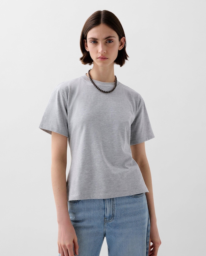 T-shirt confecionada em 100% algodão. Regular fit, gola redonda e manga curta. Detalhe de nó posterior e aberturas.