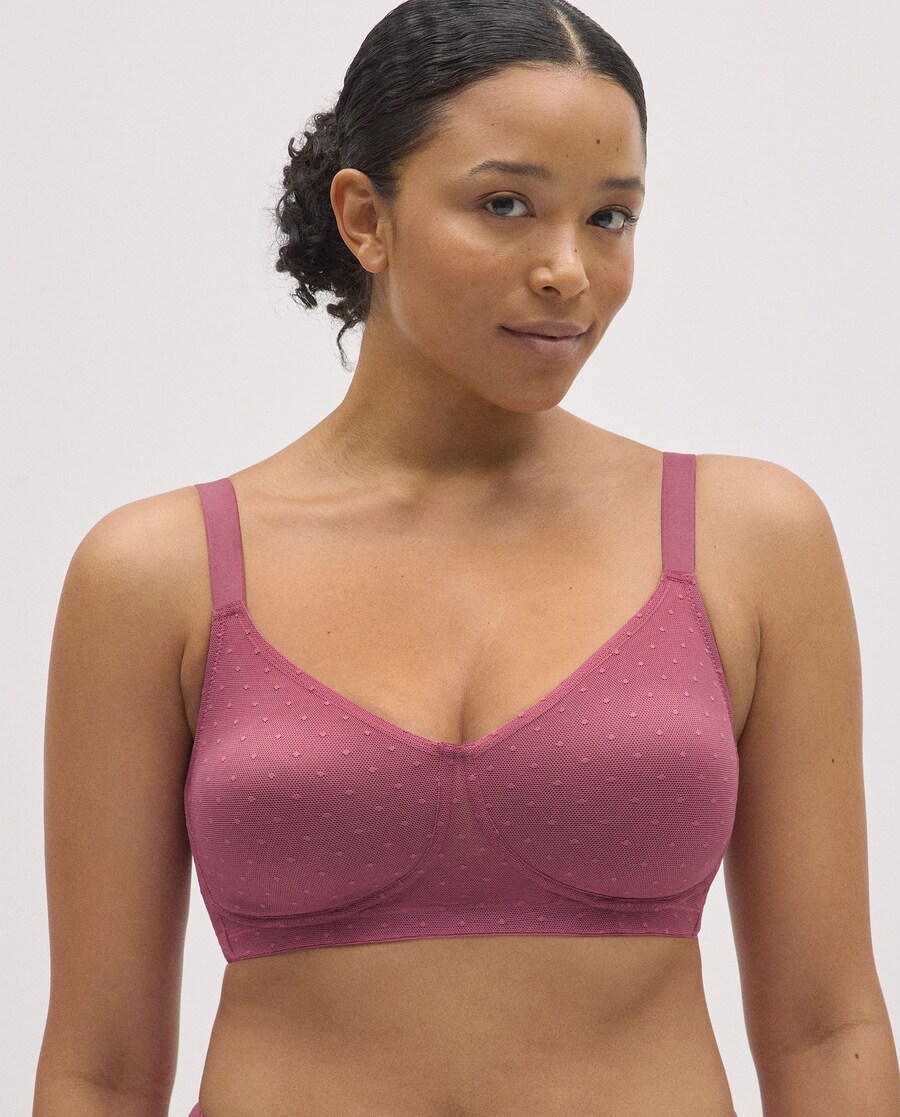 Soutien redutor de plumeti sem aro, alças largas e costas anatómicas reforçadas. 83% Poliamida, 17% Elastano