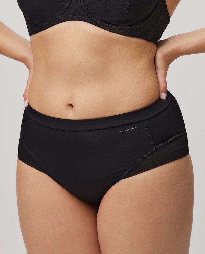 Cueca alta de tecido de microfibra com cós revestido e detalhes de tule nas laterais. Pensada para todo tipo de silhuetas. O conforto e suporte deste tanga é algo a destacar.