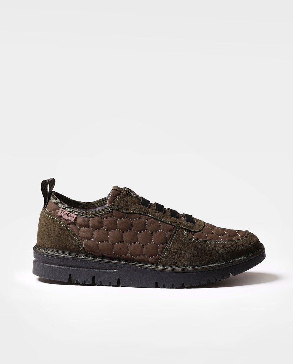 BARI-AB de Toni Pons. Sapato para mulher em tecido e camurça. É elaborado com uma combinação de tecido acolchoado e um acabamento de camurça ao tom. A sola é plana, tem 3 cm de espessura, dos quais 2 cm pertencem à sola e 1 cm ao tacão, e está feita de borracha natural. A palmilha interior está forrada com tecido respirável para maior conforto.