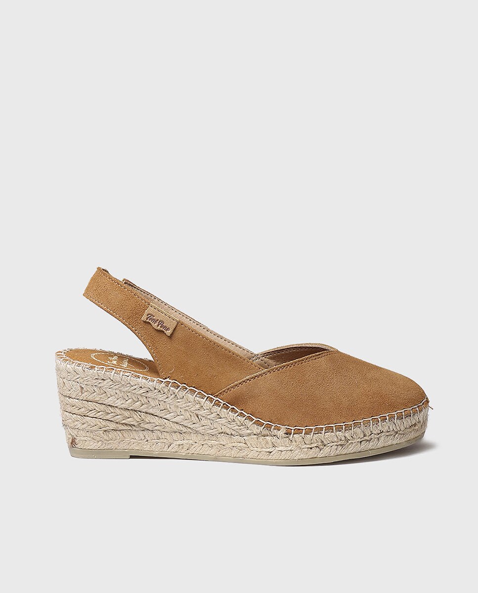 BETTY-A é uma alpargata para mulher com cunha fechada elaborada em camurça em tons lisos. A cunha de juta tem uma altura total de 5 cm, dos quais 3 cm pertencem ao tacão e 2 cm à sola. A base da sola é de borracha antiderrapante. A sola interior forrada em tecido de algodão, junto com a palmilha interior acolchoada, proporcionam uma grande sensação de conforto. A tira posterior conta com um elástico interior de alta qualidade para que se ajuste perfeitamente ao pé. A união da camurça e da sola está cosida à mão com um fio de algodão. Este modelo calça o tamanho habitual, se estiver entre dois tamanhos recomendamos escolher o maior.