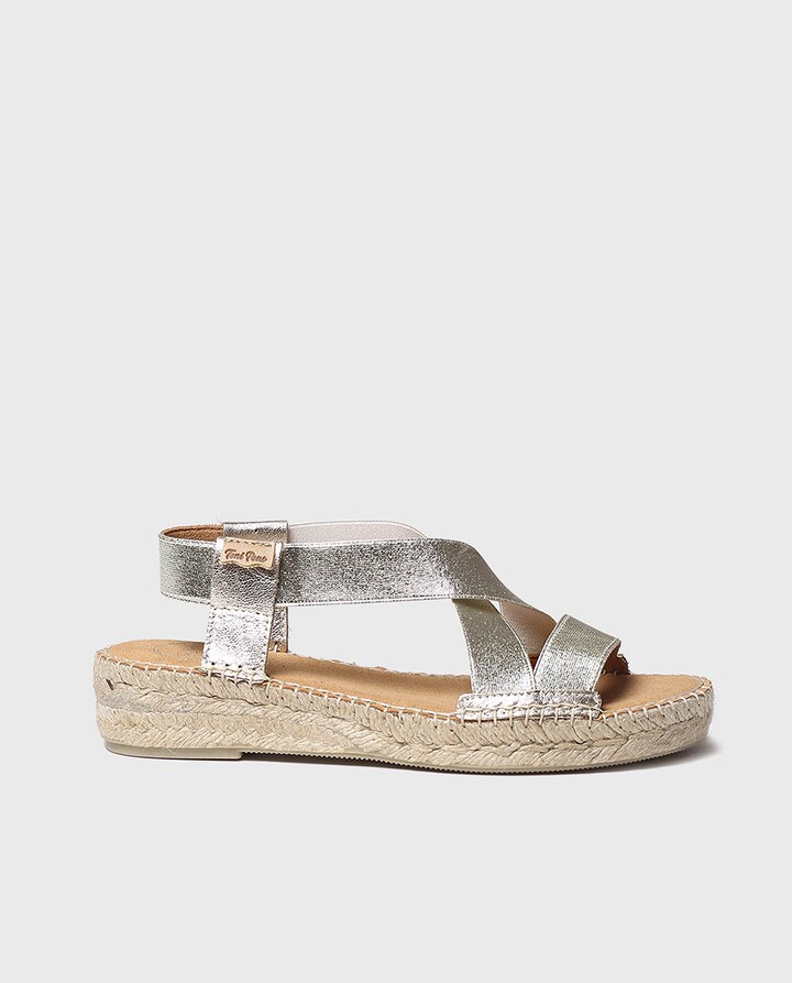 EIRE-RC de Toni Pons. Alpercatas para mulher elaboradas com elásticos e pele com forro de têxtil respirável. O salto tem uma altura total de 3,5 cm dos quais 1,5 cm pertencem ao tacão e 2cm à sola. Toda a cunha exterior está feita de juta e borracha. A palmilha interior está forrada em tecido respirável, o que lhe confere um grande conforto. A união do tecido e da sola está cosida à mão com um fio de algodão.