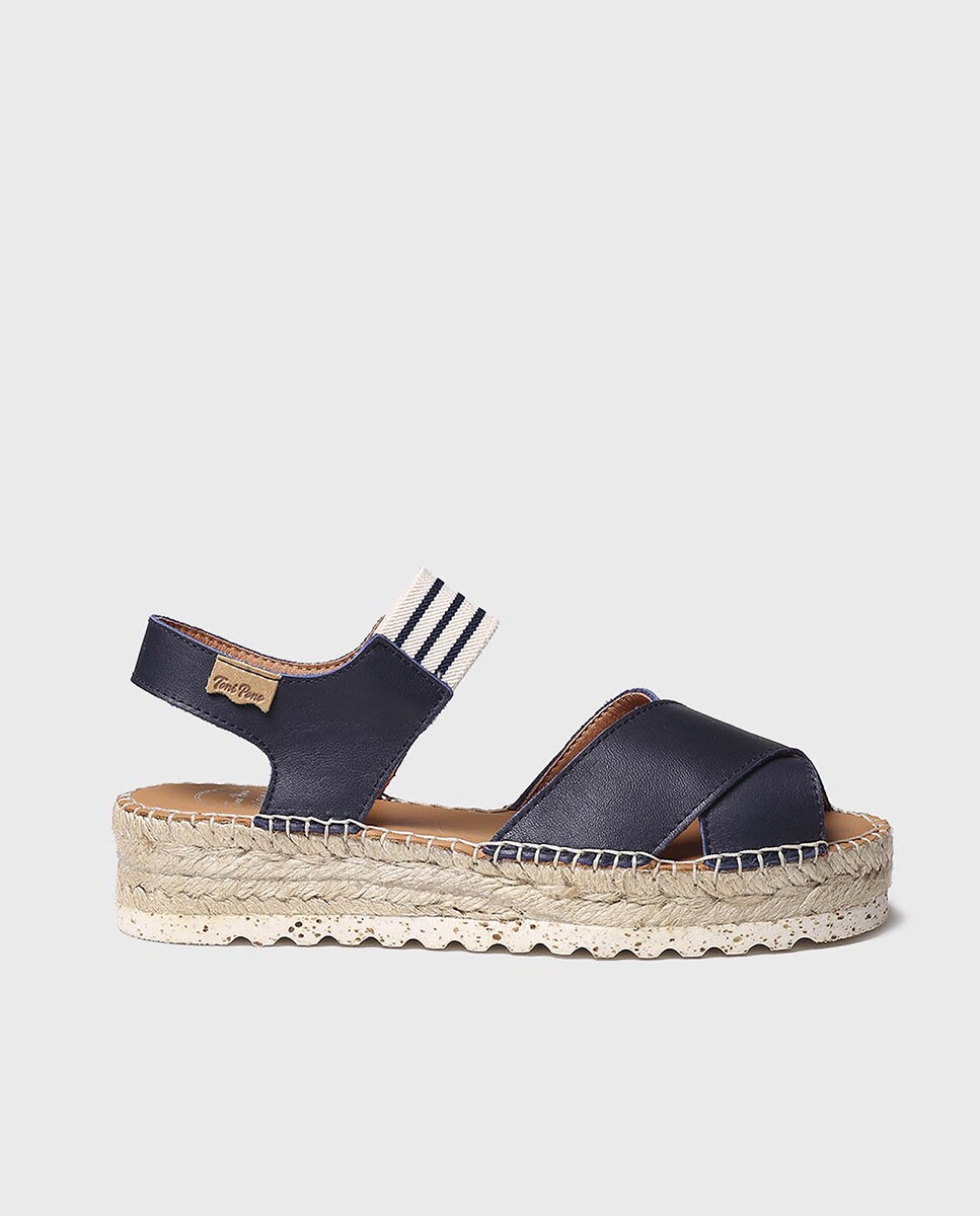 EMILY-SW de Toni Pons. Alpercatas para mulher em pele de vaca de tons lisos. O cunha tem uma altura total de 4 cm, dos quais 1,5 cm pertencem ao tacão e 2,5 cm à sola, que está feita de juta e borracha EVA. A planta interior está forrada em pele de vaca que lhe confere um grande conforto. Além disso dispõe de uma banda elástica bicolor na parte frontal, que permite ajustá-la perfeitamente ao pé.