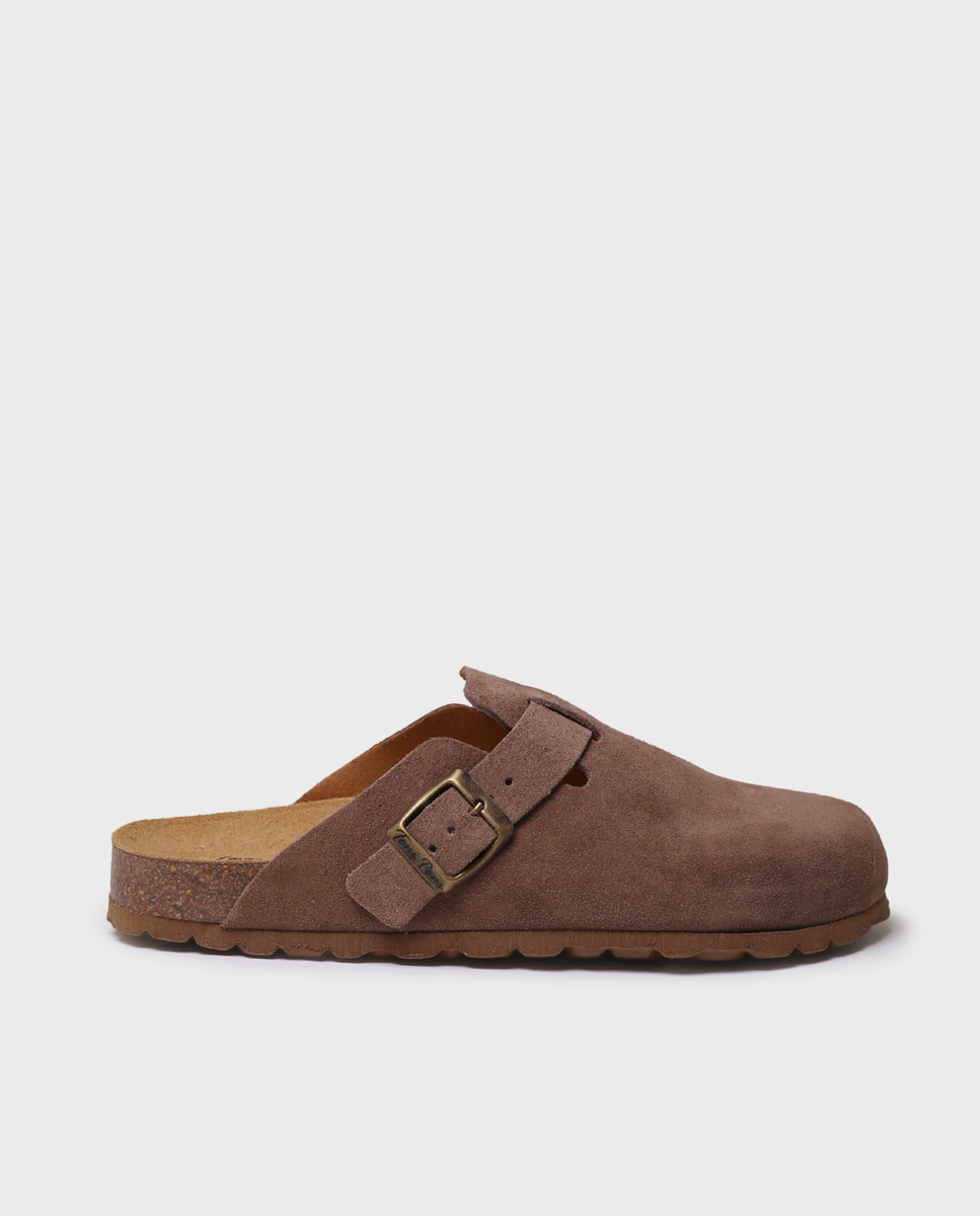GEMINA-QT. Este par de socas para mulher é confecionado em camurça. Conta com uma tira com uma fivela para assegurar um perfeito ajuste ao pé. A planta interior está forrada em camurça acolchoada para maior conforto. A sola é de cortiça e borracha EVA e tem uma altura de 2,5 cms. Este modelo calça o tamanho habitual, se estás entre dois tamanhos recomendamos escolher o maior.