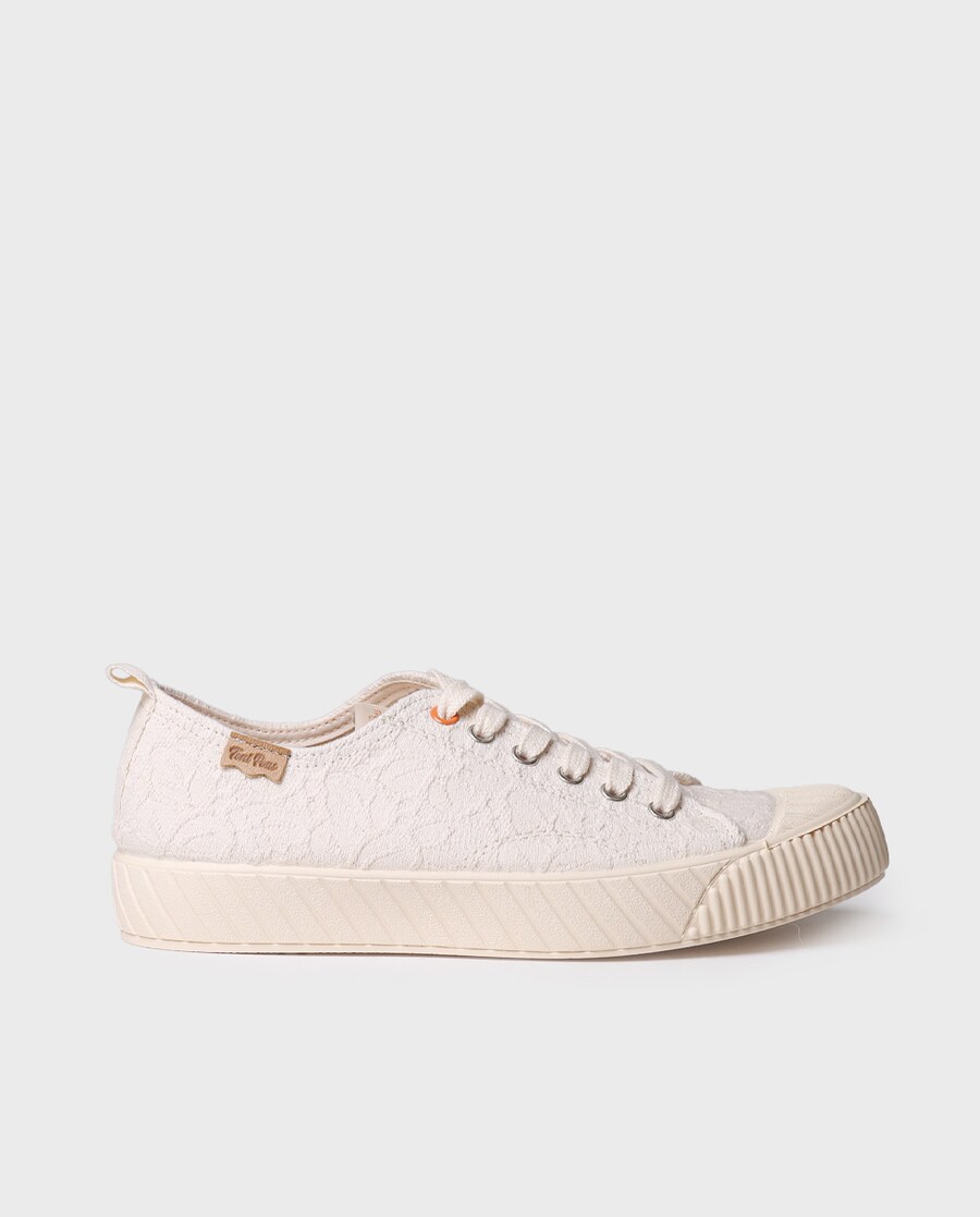 GILDA-RB. Estas sapatilhas baixas de mulher estão elaboradas em tecido reciclado em cores lisas com um relevo de flores. A sola é plana, tem 3 cm de espessura e está feita de borracha, leva um reforço de borracha na biqueira para maior durabilidade. A palmilha interior está forrada em tecido respirável. Estas sapatilhas são atadas com atacadores para assegurar um ajuste perfeito ao pé. É um modelo 100% vegano. Este modelo calça o número habitual, se estás entre dois números escolhe um número mais pequeno.