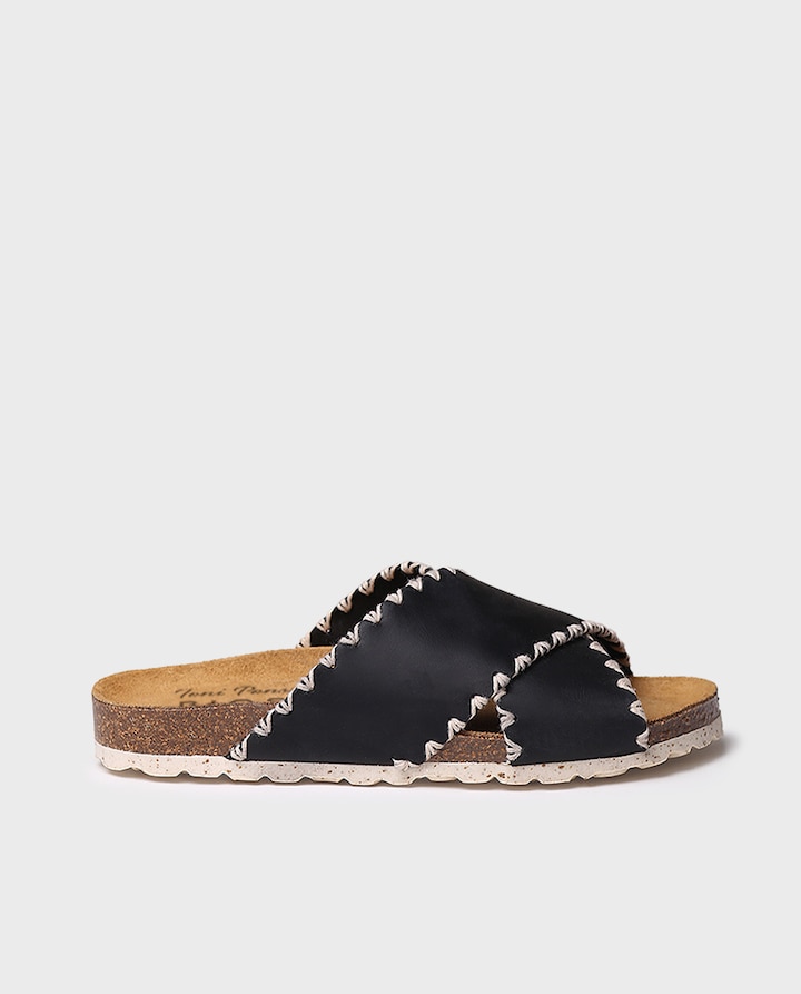 GRIT-PE. Estas sandálias tipo BIO de mulher com tiras cruzadas estão elaboradas em couro. A sola é de cortiça e borracha EVA e tem uma altura total de 2,5 cm. A planta está forrada em camurça para maior conforto. Estas sandálias estão feitas com pele de vaca tratada com gordura natural. As variações de cor são intencionais. Este modelo calça o tamanho habitual, se estás entre dois tamanhos te recomendamos escolher o maior.