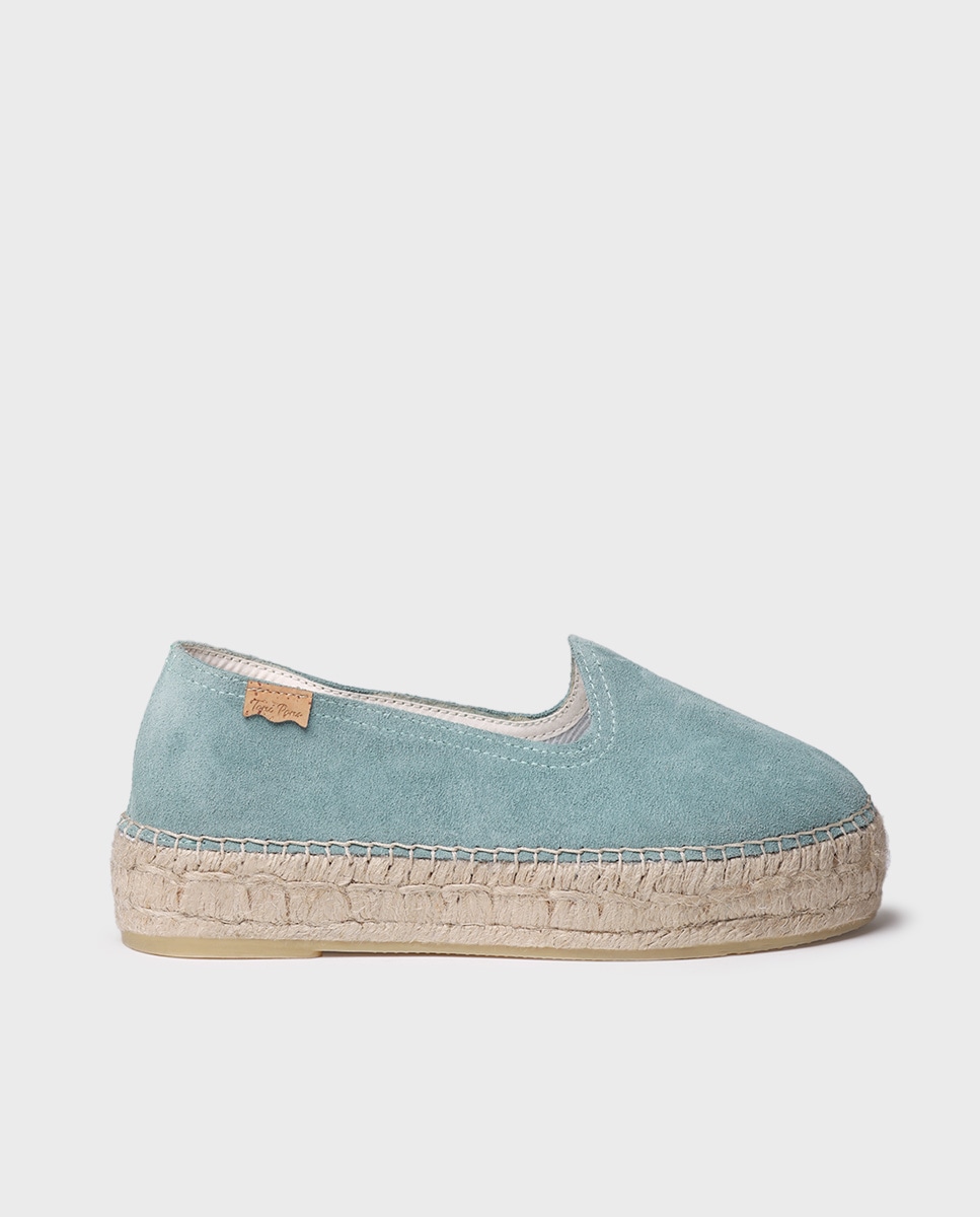 KEIRA. Estas alpercatas fechadas de mulher são confecionadas em camurça em tons lisos. A sola de juta tem uma altura total de 3,5 cm e a base é de borracha antiderrapante. A palmilha interior está forrada em tecido acolchoado. Este design está cosido à mão em Espanha. Este modelo calça o tamanho habitual, se estiver entre dois tamanhos recomendamos escolher o maior.
