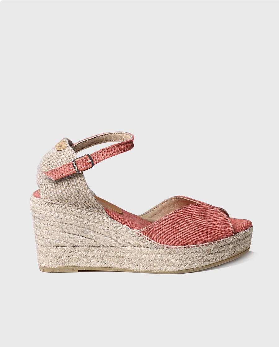 LUA-NT. Estas alpargatas de cunha com fecho de fivela estão elaboradas em linho. Têm uma altura total de 7 cm, dos quais 5 cm pertencem ao tacão e 2 cm à sola. Toda a cunha está feita de juta e a sola interior está forrada em linho com um culote de pele no calcanhar. A base da sola é de borracha antiderrapante. O calcanhar está elaborado em tecido entrançado. Este modelo calça o tamanho habitual, se estiver entre dois tamanhos recomendamos escolher o maior.