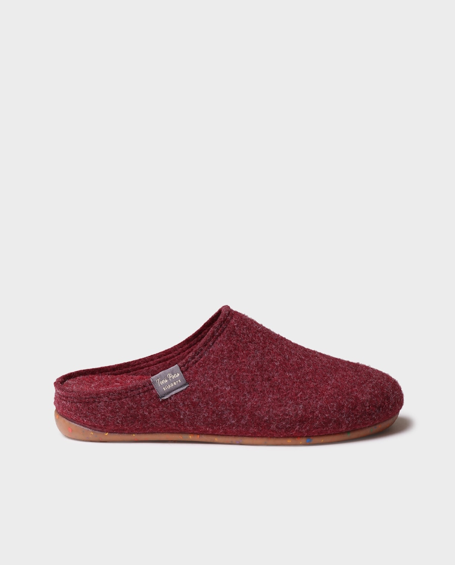 MONA-FR. Este slipper tipo socas para mulher está feito em feltro reciclado a partir de garrafas de plástico, é elaborado em tons lisos. A sola é plana e tem 0,5 cm de espessura. Toda a sola está feita em borracha antiderrapante. Conta com uma palmilha removível com uma cunha de 1,5 cm na parte do calcanhar que se acopla à sola exterior e lhe dá ao slipper um total de 2 cm de altura. Este sapato calça o tamanho habitual, se estiver entre dois tamanhos recomendamos escolher o tamanho maior. Não é aconselhável lavar os slippers na máquina de lavar. Recomendamos consultar o guia de cuidados para saber como mantê-los.