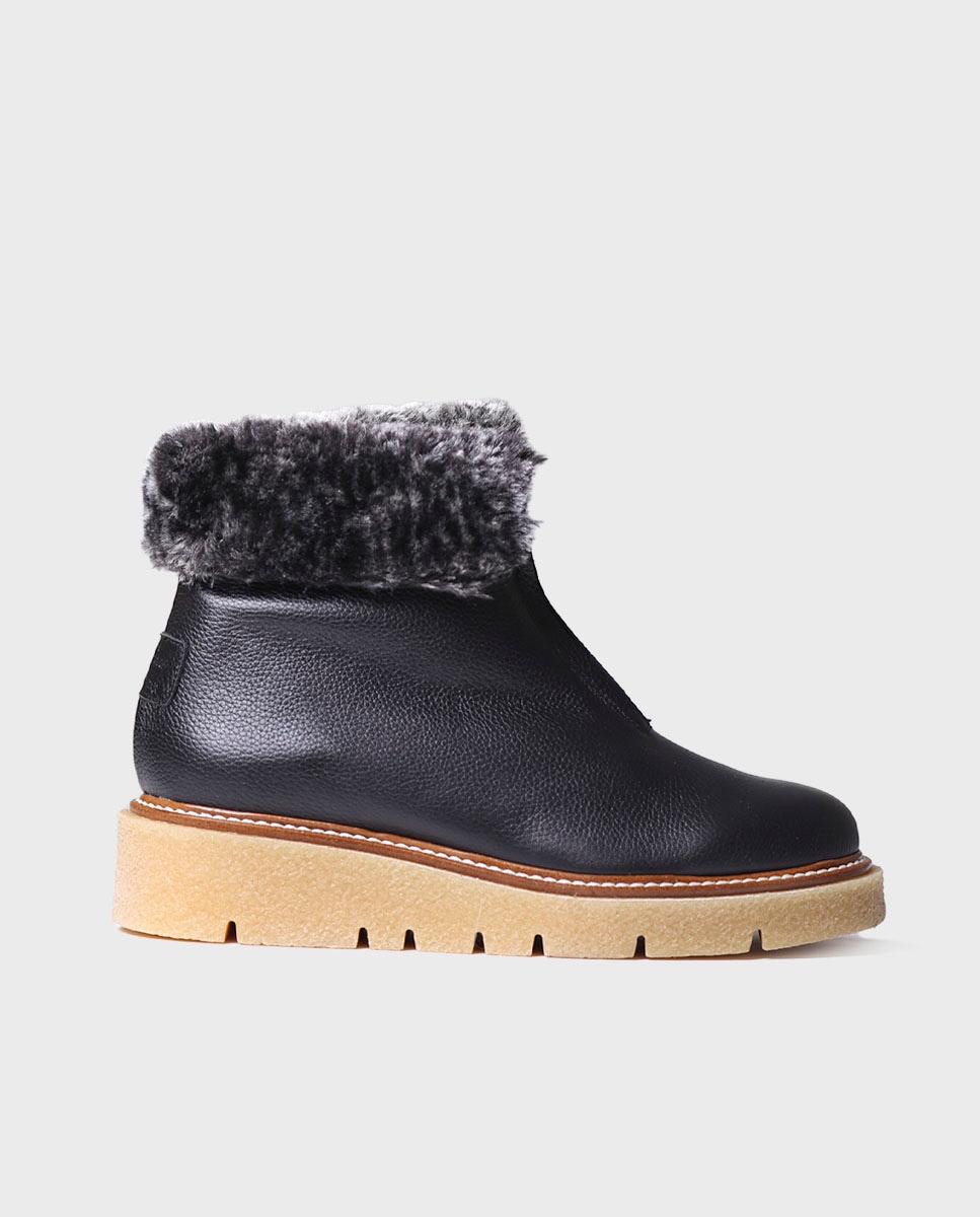 NANDA-PO. Este botim de mulher está elaborado em pele e tem um forro interior de suave pelo sintético. A sola é de borracha antiderrapante e tem uma altura de 5,5 cm. Conta com um fecho de correr frontal como fecho. Este modelo calça o tamanho habitual, se estás entre dois números escolhe um tamanho maior.