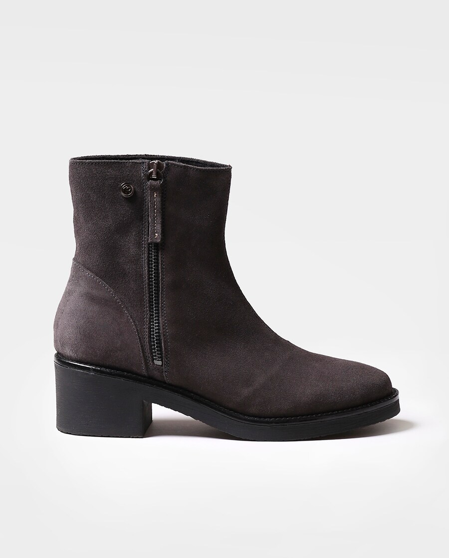 Botins PRATO-SY de Toni Pons. Botins para mulher elaborados em camurça. São elaborados em tons lisos. A sola tem uma altura total de 5,5cm dos quais 4cm pertencem ao tacão, e 1,5cm à sola e está feita de borracha natural. A palmilha interior está forrada em pele.