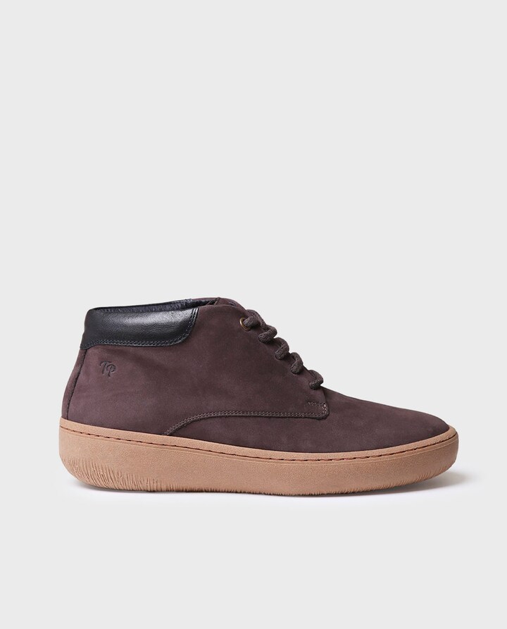 SORT. Estas botas de nobuck para mulher são elaboradas em tons lisos. Tem atacadores para assegurar um perfeito ajuste. A sola contrastada de 4 cm é de borracha antiderrapante. Dispõe de um detalhe posterior em pele. Este modelo calça o tamanho habitual, se estás entre dois números, escolhe um tamanho maior.