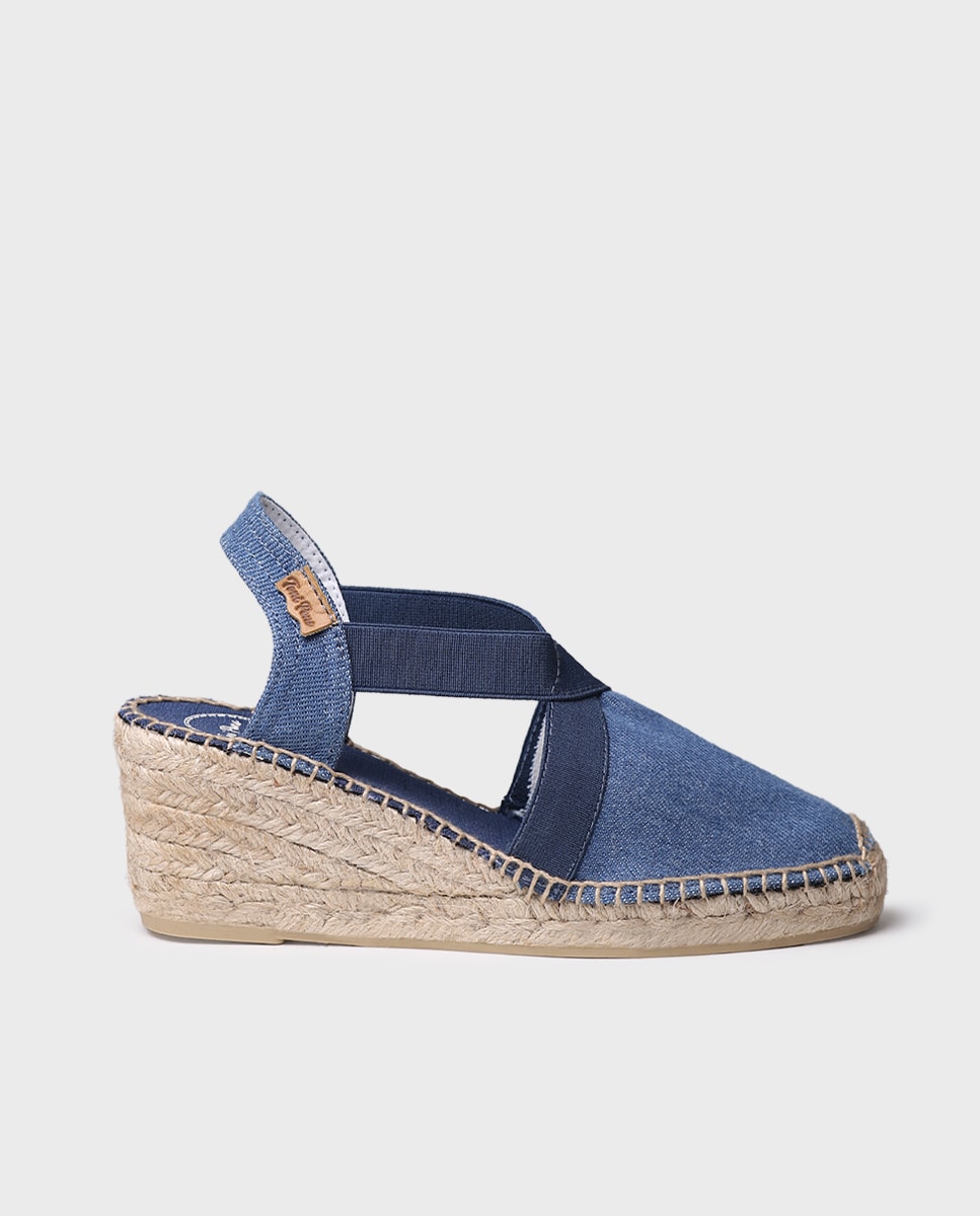 TER. Estas alpercatas de mulher estão elaboradas em algodão. O cunha de juta tem uma altura total de 6 cm, dos quais 4 cm formam parte do tacão e 2 cm da plataforma. A base da sola é de borracha antiderrapante. A palmilha interior está forrada em tecido. Conta com duas bandas elásticas para uma perfeita sujeição ao pé. A união do tecido e da sola está cosida à mão com um fio de algodão e tem um reforço na ponta para maior sujeição. É um modelo 100% vegano.Este modelo calça o tamanho habitual, se estás entre dois tamanhos te recomendamos escolher o maior.