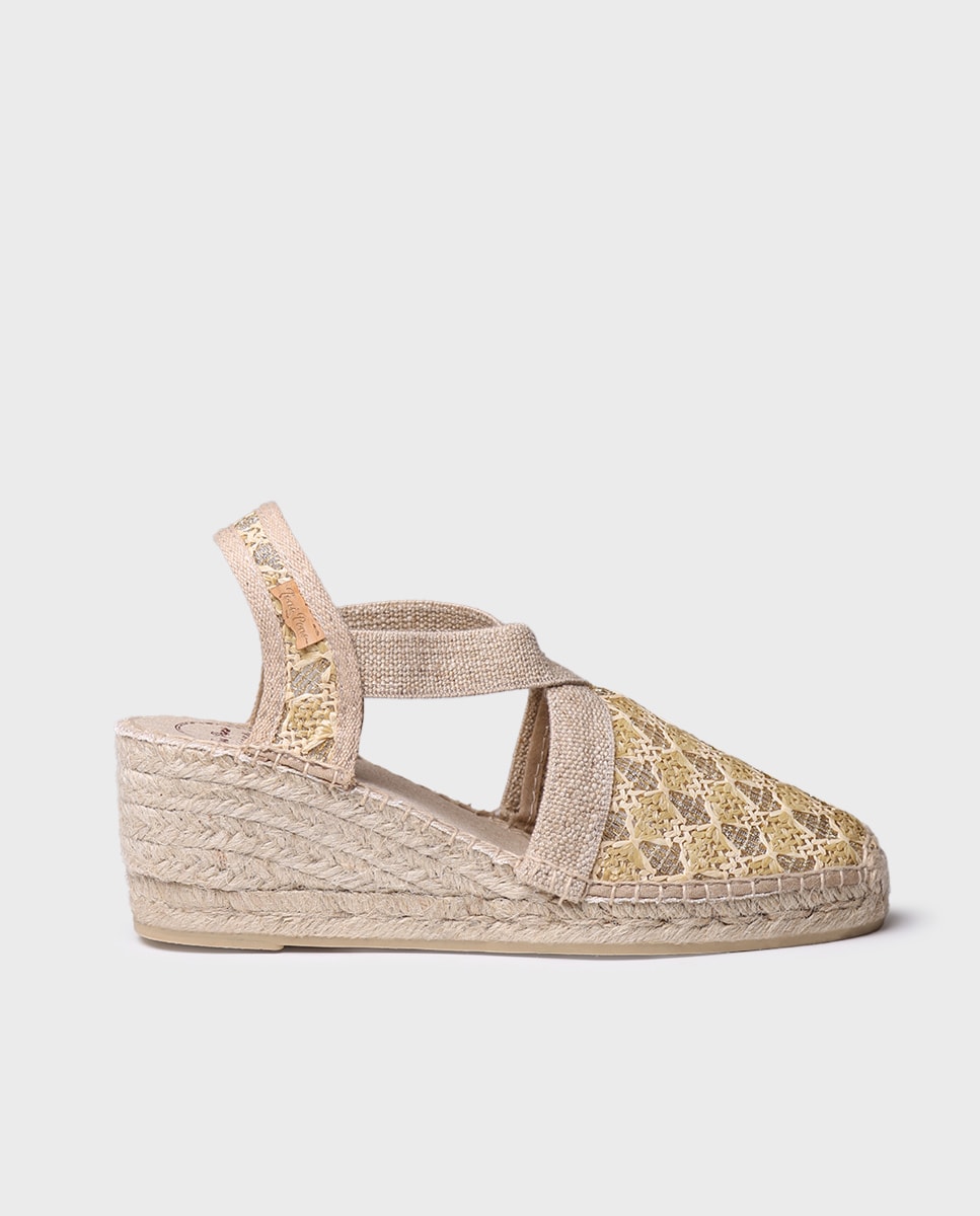 TERRA-TT. Estas alpargatas de mulher estão elaboradas em tecido multicolor. O cunha de juta tem uma altura total de 6 cm, dos quais 4 cm formam parte do tacão e 2 cm da plataforma. A base da sola é de borracha antiderrapante. A palmilha interior está acolchoada e forrada em tecido de algodão. Conta com duas bandas elásticas para uma perfeita fixação ao pé. Este design está cosido à mão em Espanha. É um modelo 100% vegano. Este modelo calça o tamanho habitual, se estás entre dois tamanhos te recomendamos escolher o maior.