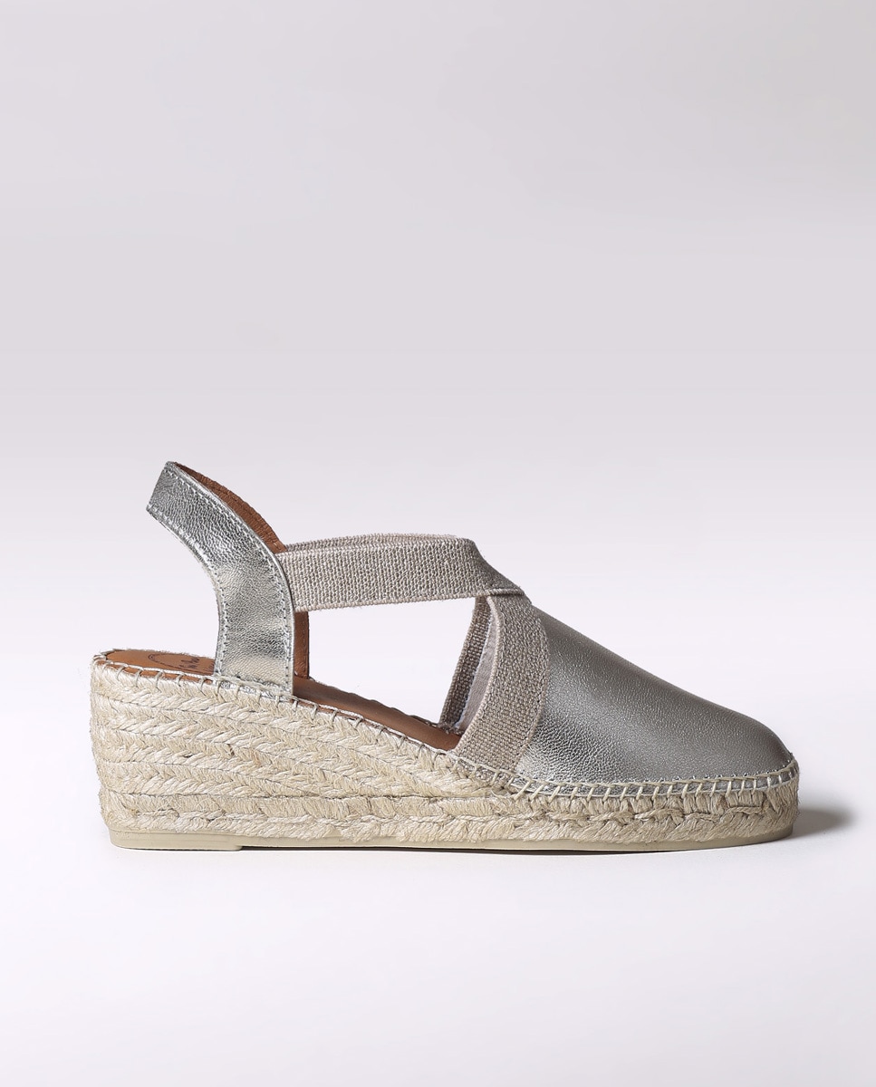 TOSSA. Estas alpargatas de mulher estão elaboradas em pele com forro de tecido respirável. O cunha de juta tem uma altura total de 6 cm, dos quais 4 cm formam parte do tacão e 2 cm da plataforma. A base da sola é de borracha antiderrapante. A palmilha interior está forrada em pele. Conta com duas bandas elásticas contrastadas para um perfeito ajuste ao pé. A união da pele e da sola está cosida à mão com um fio de algodão e tem um reforço na ponta para maior suporte. Este modelo calça o tamanho habitual, se está entre dois tamanhos recomendamos escolher o maior.
