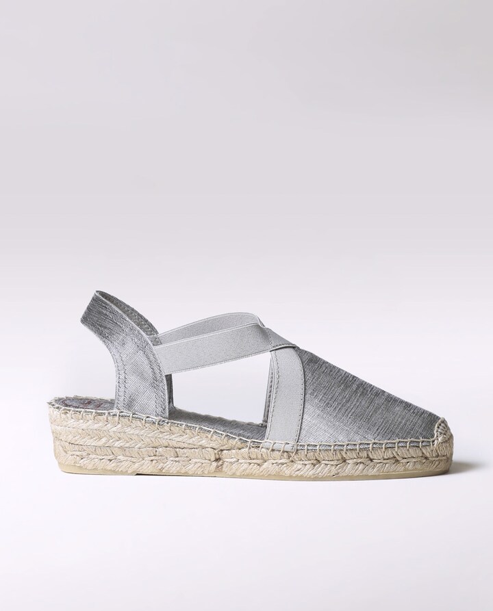 Alpercatas de Cunha em Tecido Brilhante com Elásticos