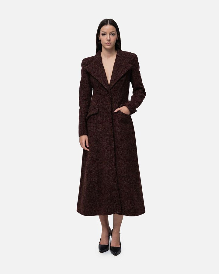 Sobretudo em lã mescla gráfico comprido com golas largas, fabricadoem Portugal