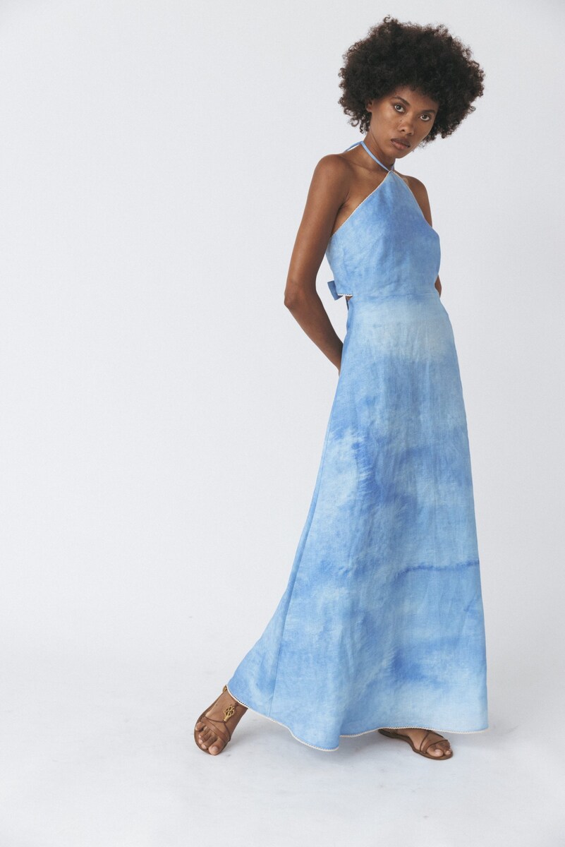 Vestido Linho Roda Azul