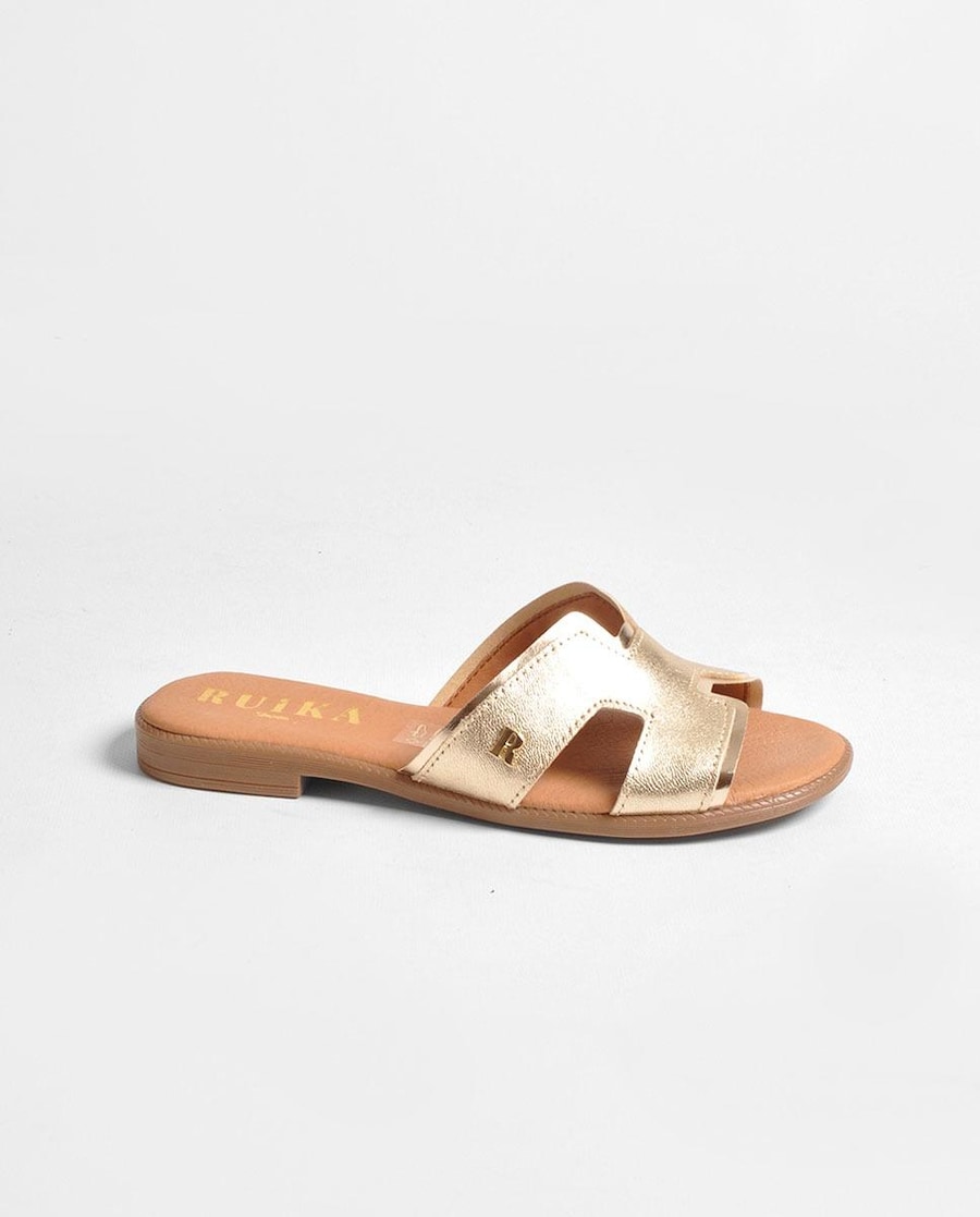 Chinelo em pele laminado platino. Produzidos em Portugal.