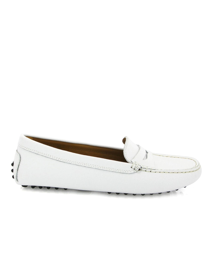 Drivers Michèle em pele gravada branca com cosido manual, sola de borracha e forro em pele. Fabricado em Portugal.