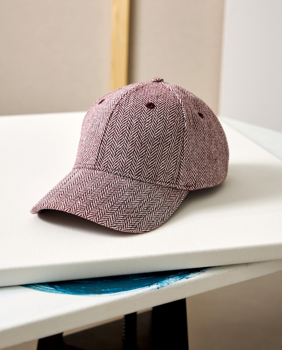 Boné com Padrão Espinha de Peixe