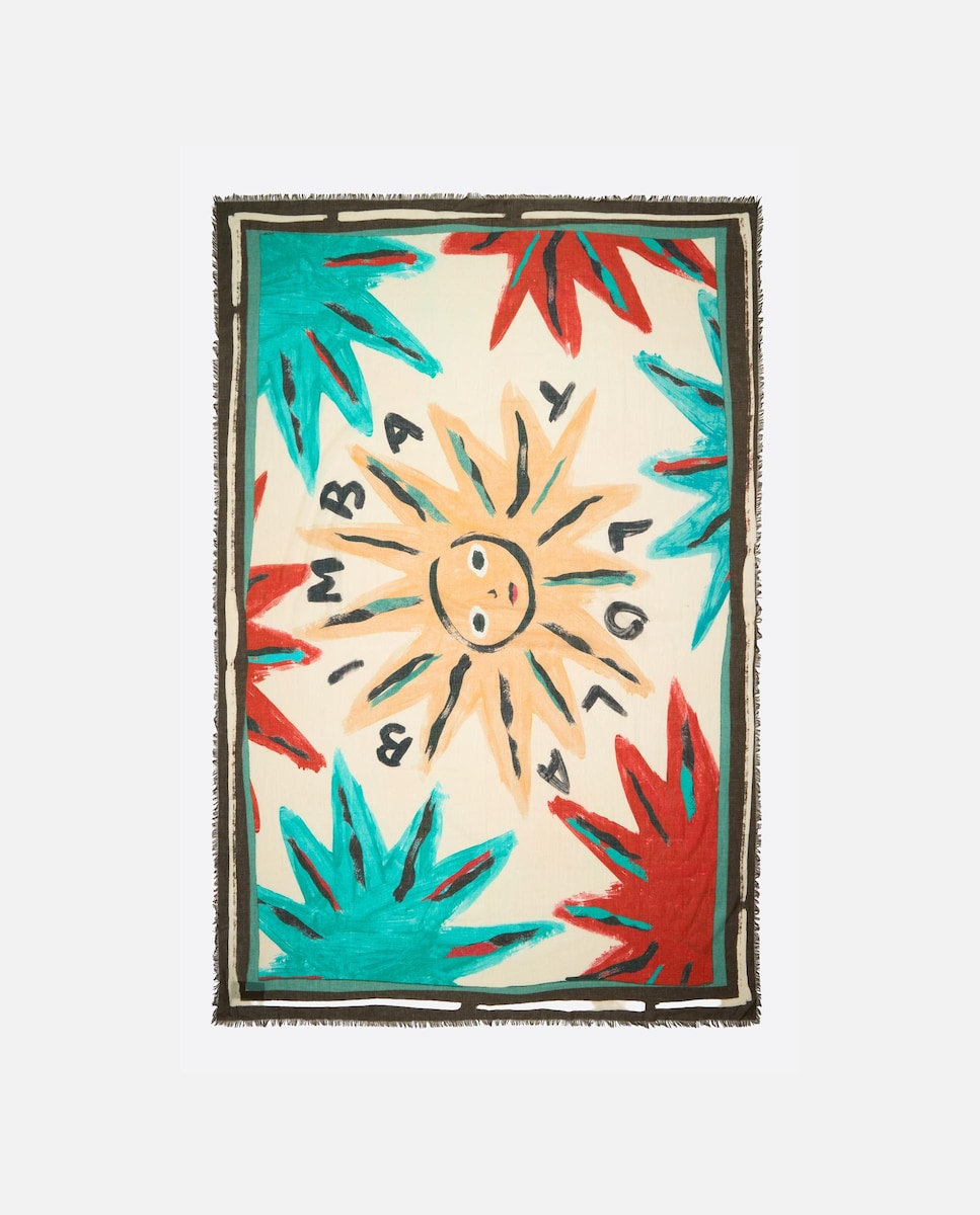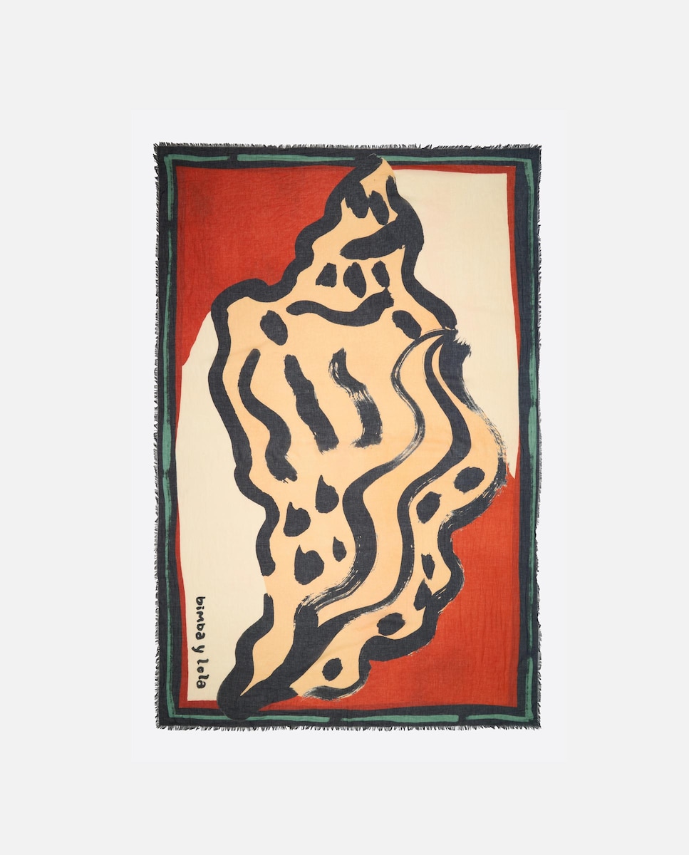 Écharpe Tipo Xaile com Estampado de Letras em Linho e Modal