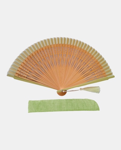 Leque de madeira bege com estampado de confetti