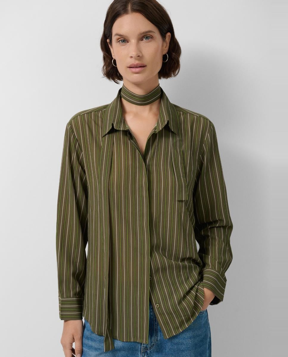Camisa às Riscas com Laço no Colarinho