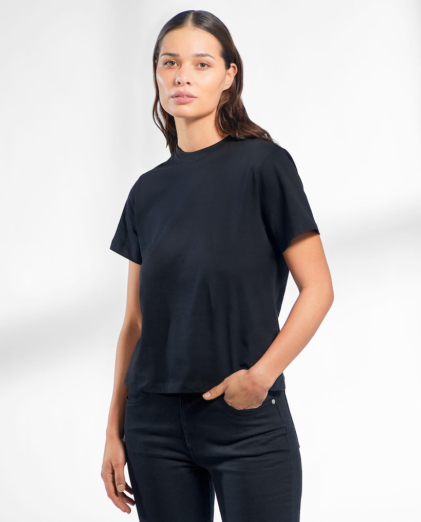 T-shirt de Algodão Orgânico 100% de Manga Curta e Gola Redonda