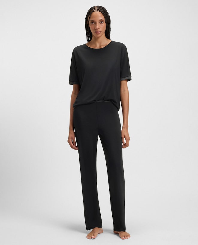 BossCalças em Veludo Suave com Perna Regular - Cru Bainha Elástica. Atacadores de Cetim com Monograma Brilhante. Placa Dourada.Adicionar
