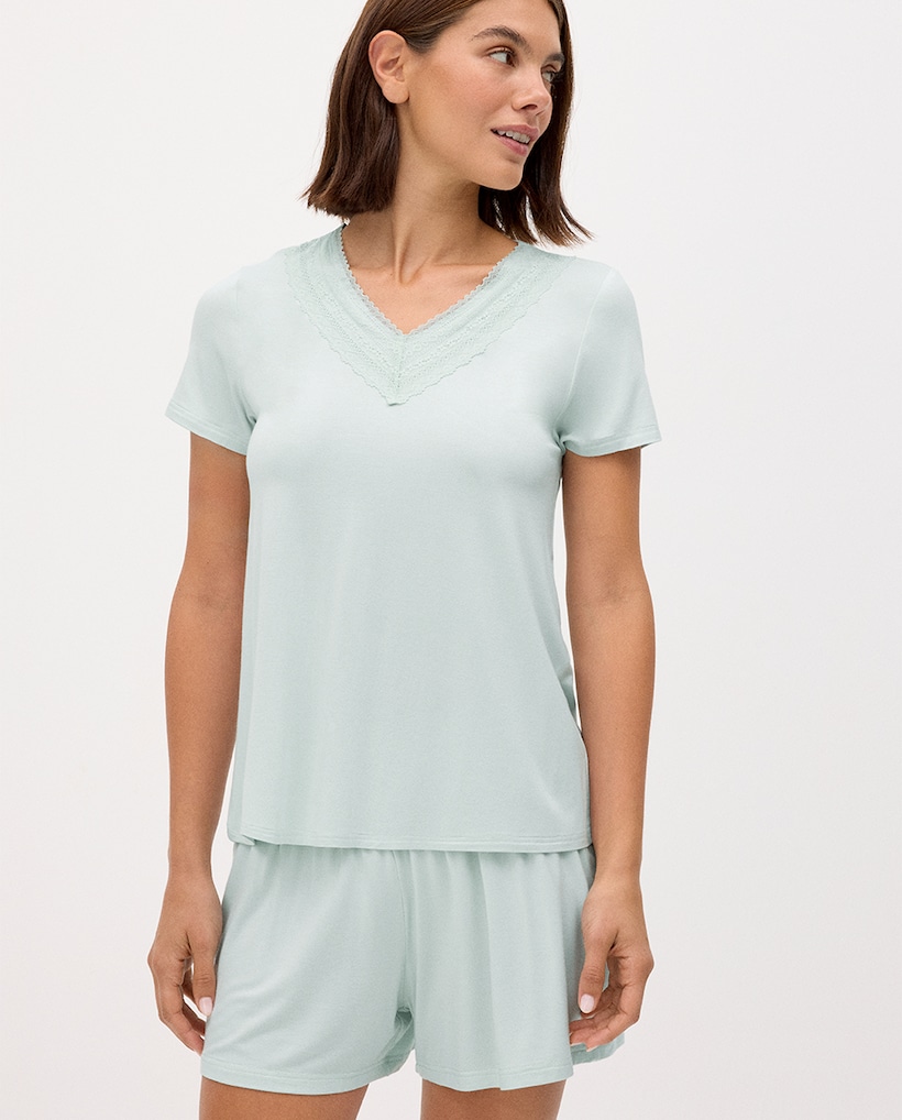 Pijama Completo Leve T-shirt de Manga Curta e Calças Curtas