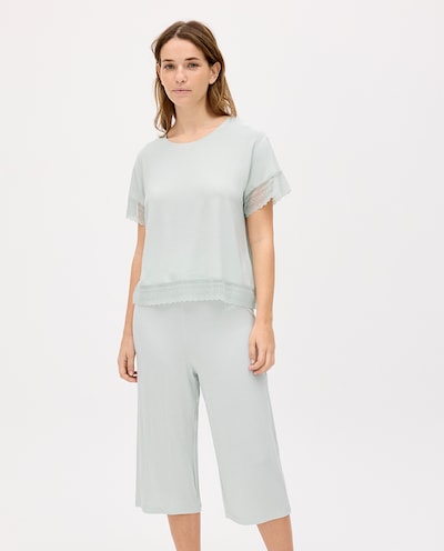 Pijama Completo Leve T-shirt de Manga Curta e Calças Capri Largas