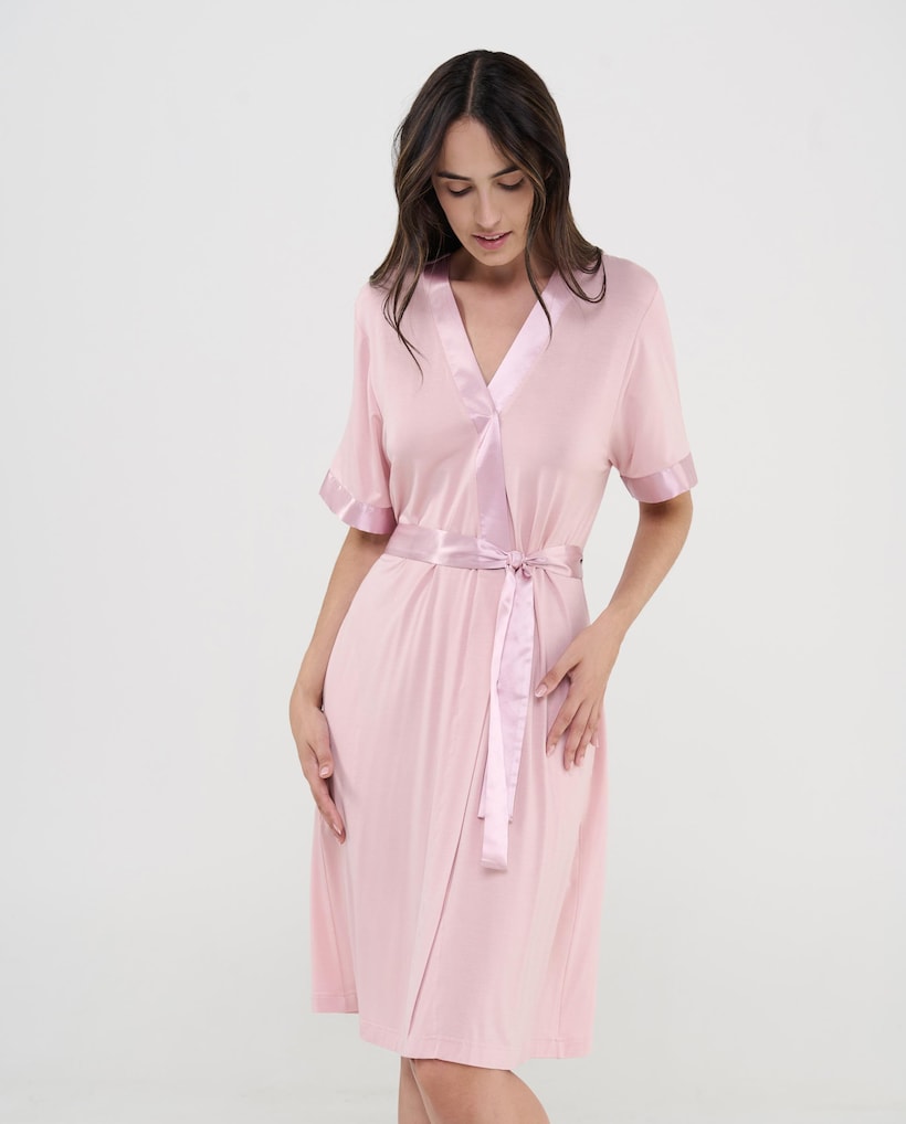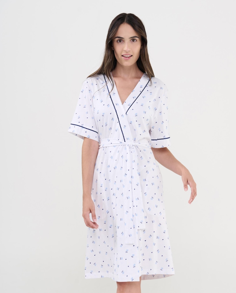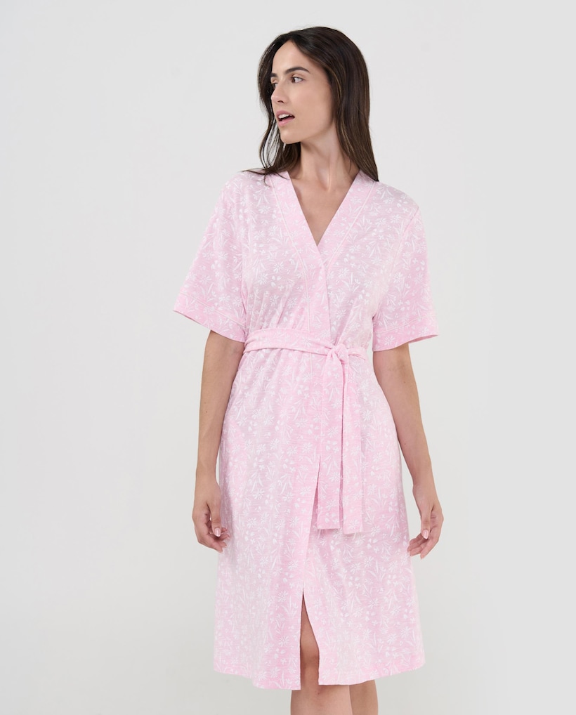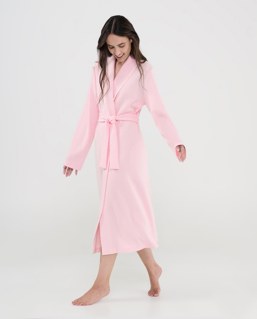 Robe Comprido de Lingerie Cruzado de Manga Comprida Jacquard