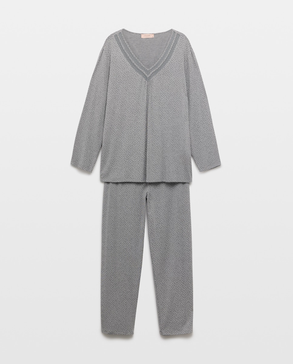 Pijama às Bolinhas com Decote em Bico