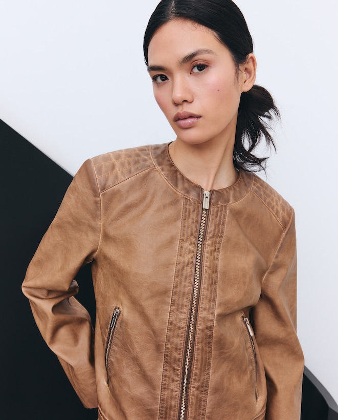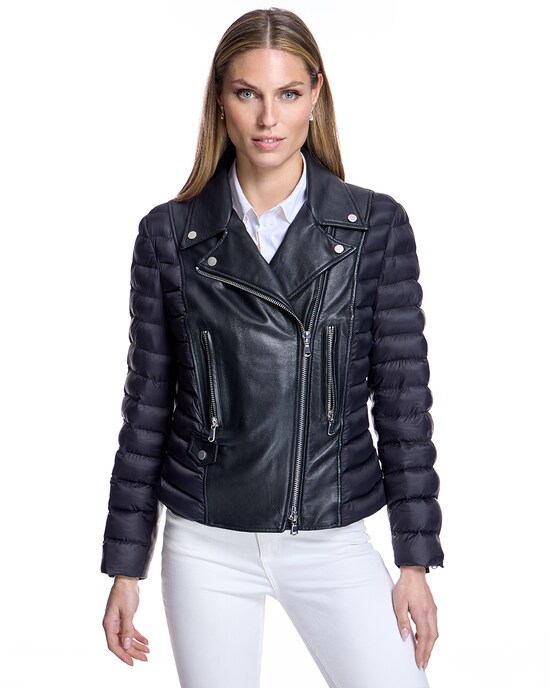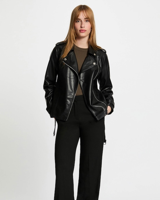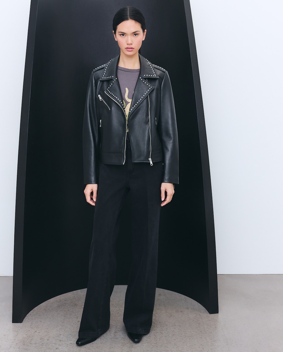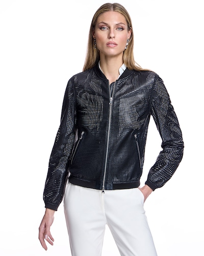 Blusão Biker com Tachas de Furo e Fecho Zip